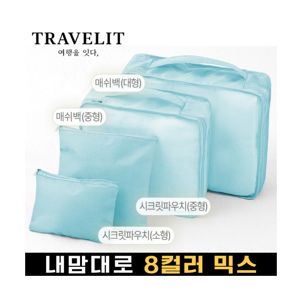 트래블잇 내맘대로 8컬러 믹스 여행용파우치 4종세트-스카이
