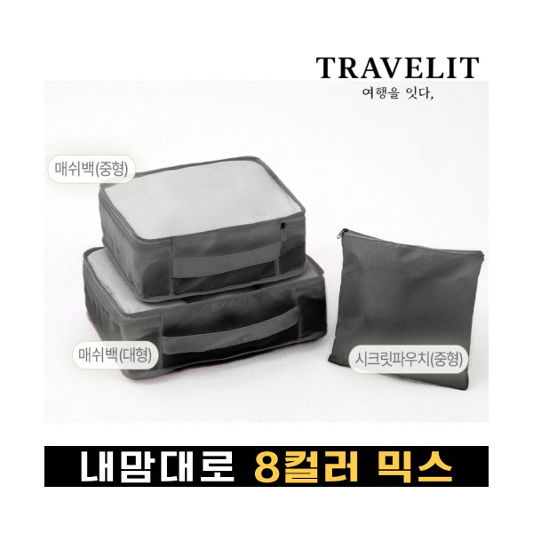 트래블잇 내맘대로 8컬러 믹스 여행용파우치 3종세트-블랙