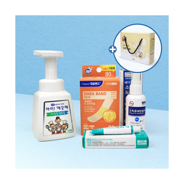 | 기타사항 | 주방전용 키친솝 아이깨끗해 250ml + 대용량 대일밴드 80매 + 닥터스킨 상처연고 + 스프레이 소독제 + 아이깨끗해 정품케이스 스티커 제작 및 부착 별도문의 |