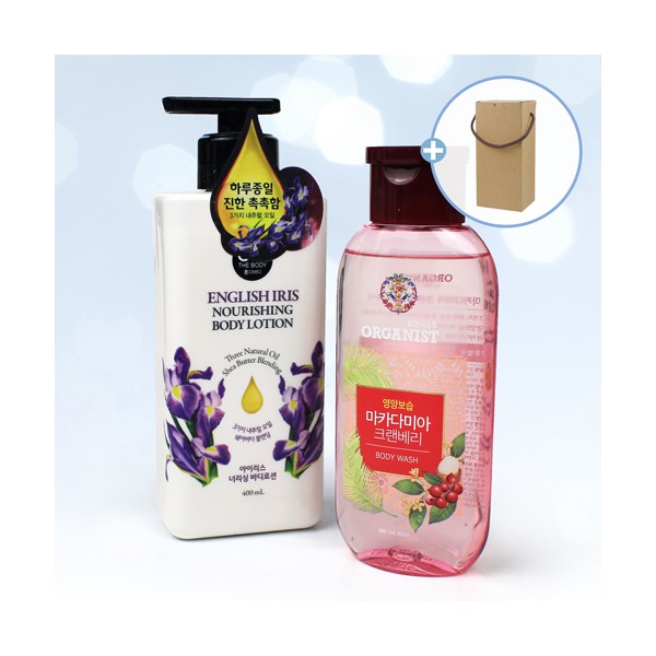 온더바디 아이리스 너리싱 바디로션 400ml + 오가니스트 마카다미아 크랜베리 바디워시 190ml + 끈케이스