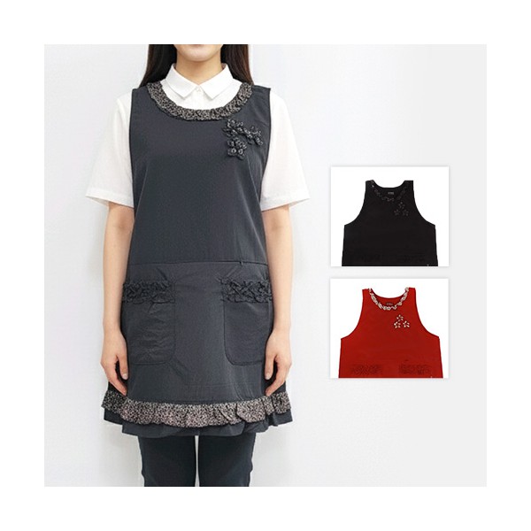 남자 여자 주방 지퍼주머니 프릴 원피스형 앞치마