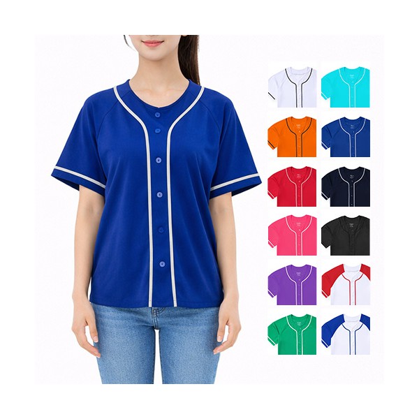 남성 여성 행사 에어로쿨 베이스볼 야구 컬러 라인 반팔 티셔츠 (S-3XL)